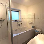 Ferienwohnung An Der Elbe biedt gasten de handige voorziening van een haardroger en badlakens in de badkamer. Er is ook een apart toilet en een douche.